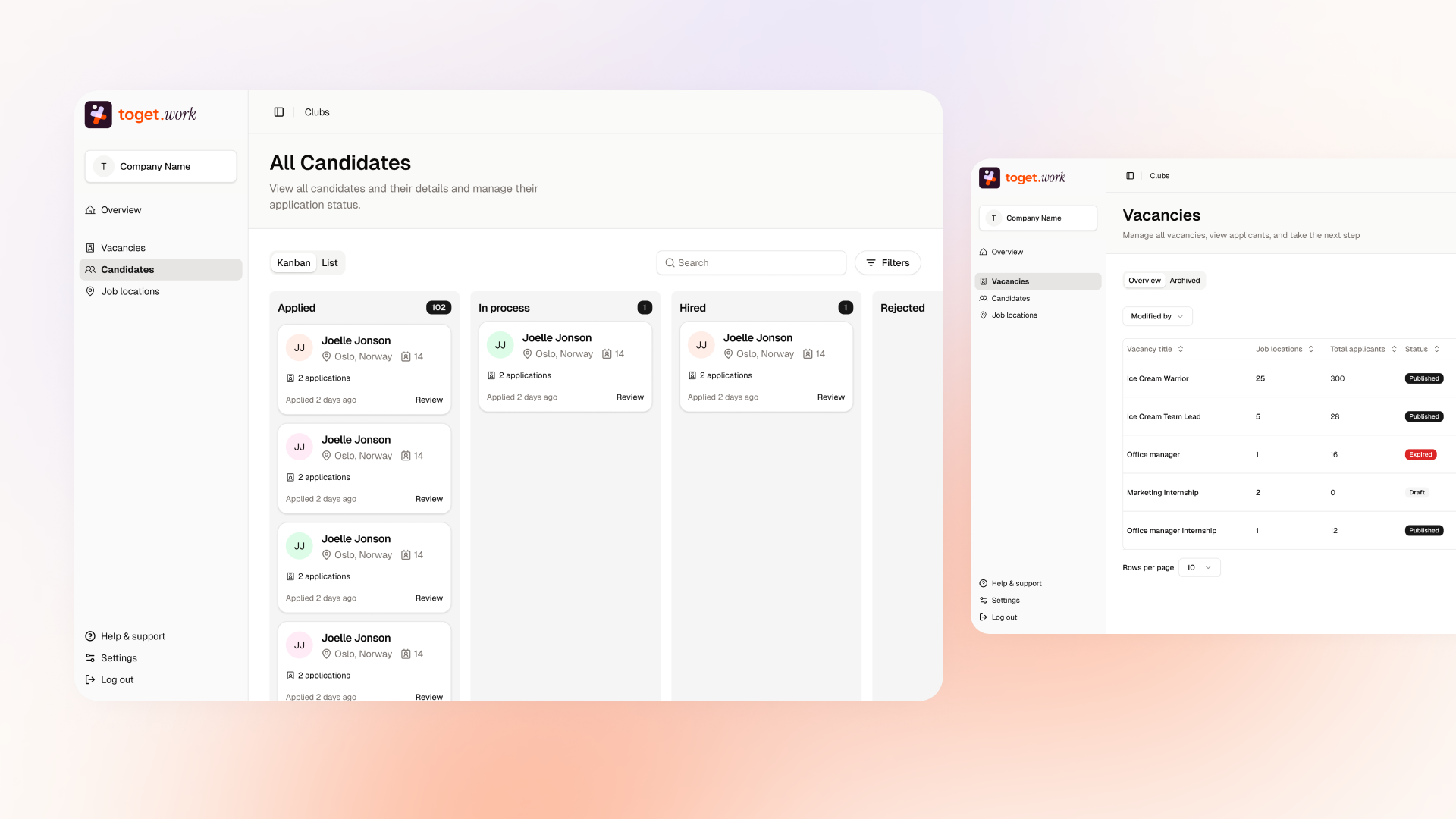 But confidence on the teen side only works if hiring becomes easier on the employer side too. The platform therefore includes a dedicated youth hiring system. Each company receives a secure admin environment where vacancies can be published and applicants managed throughout the hiring journey, from job posting to day one on the job.